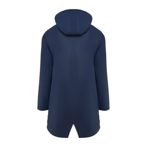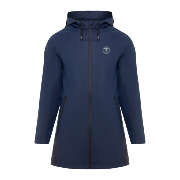 Chubasquero de mujer azul marino con logo bordado.